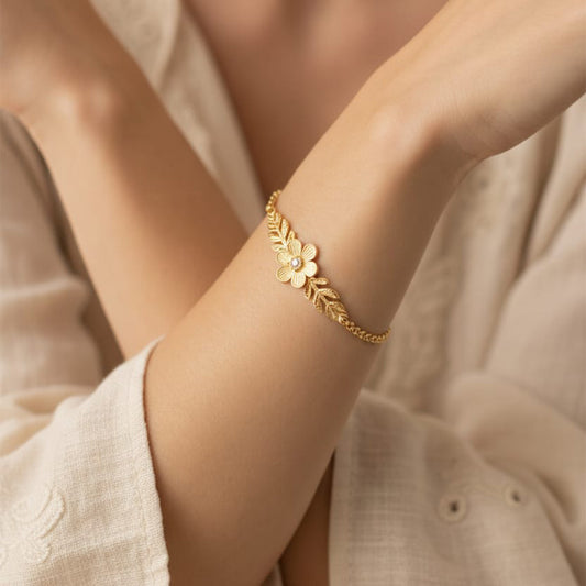 Our bracelets embody understated elegance sleek, versatile, and effortlessly chic. From delicate chains to refined bangles, each piece is designed to layer beautifully or shine on its own, adding the perfect finishing touch to any look.