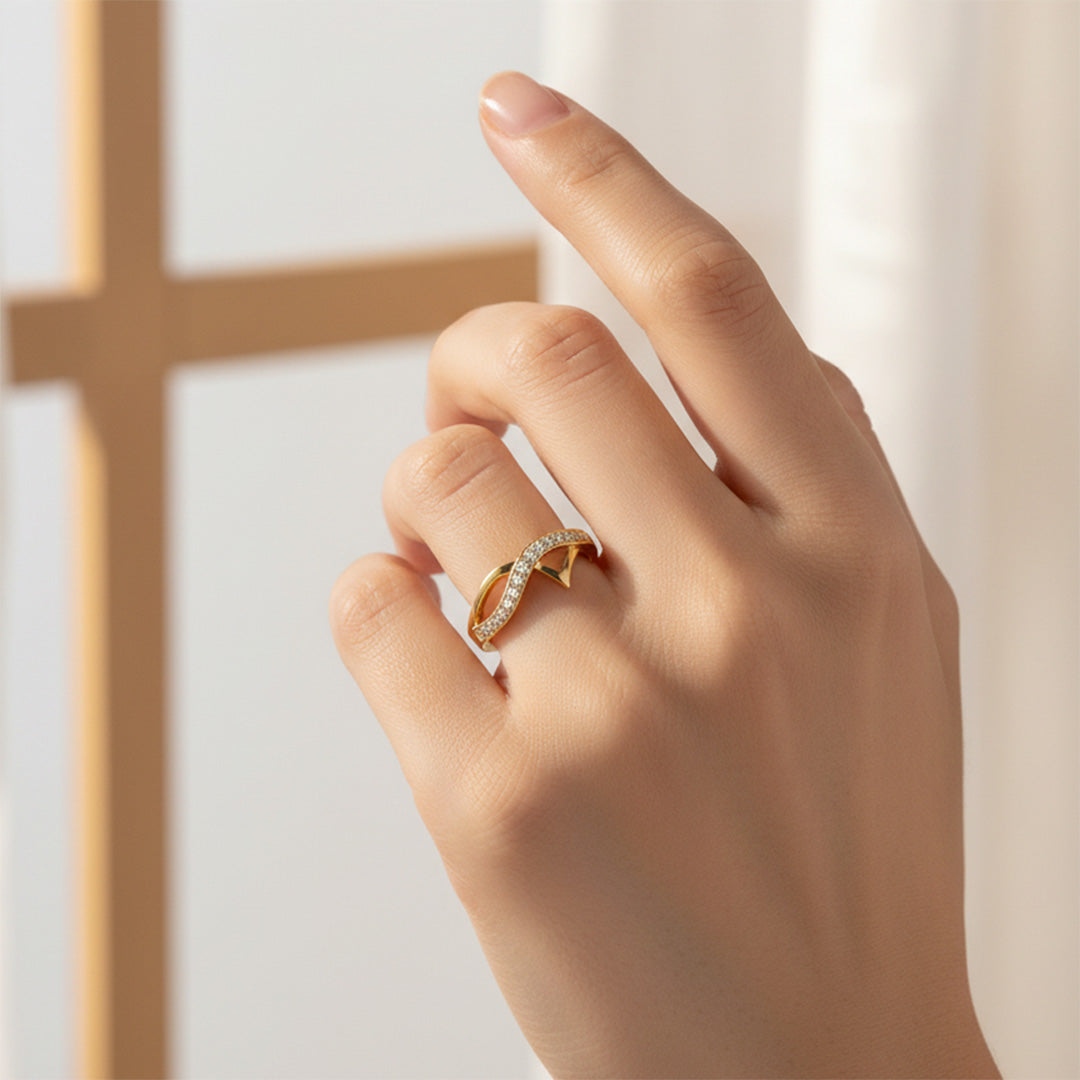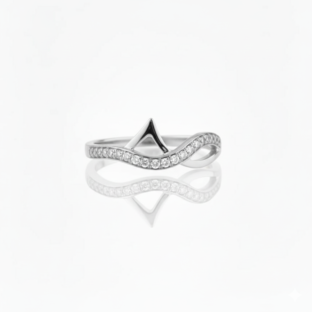 Stone: Cubic zirconia pave-set along the curved wave band
