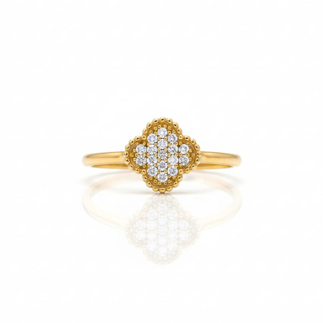 Design: Vintage-inspired flower-shaped ring with a delicate beaded border