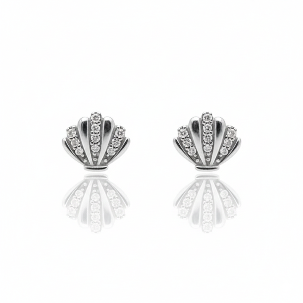 Design: Miniature scallop seashell studs with intricate ridged detailing